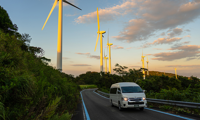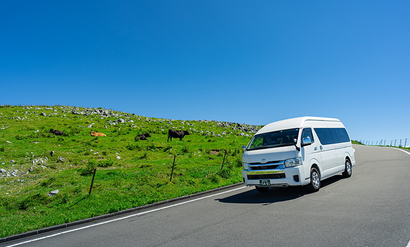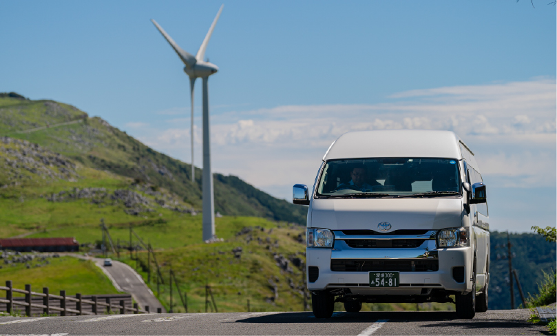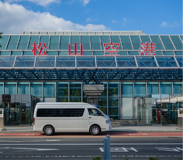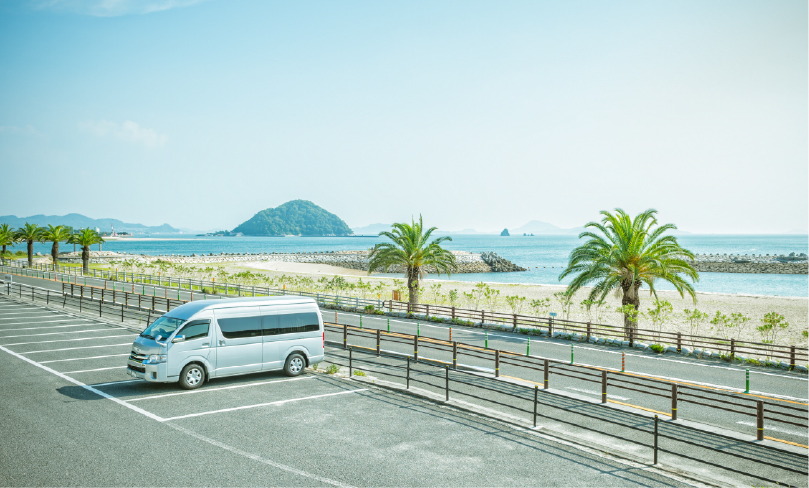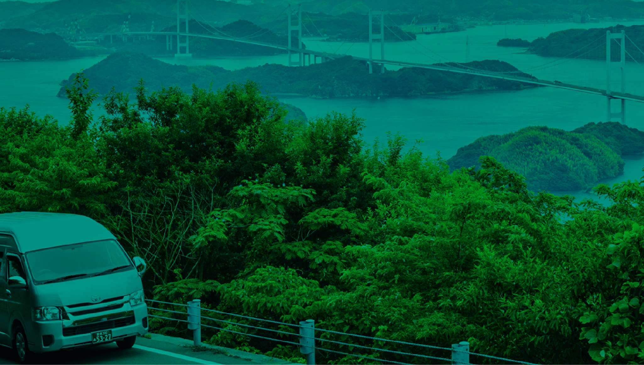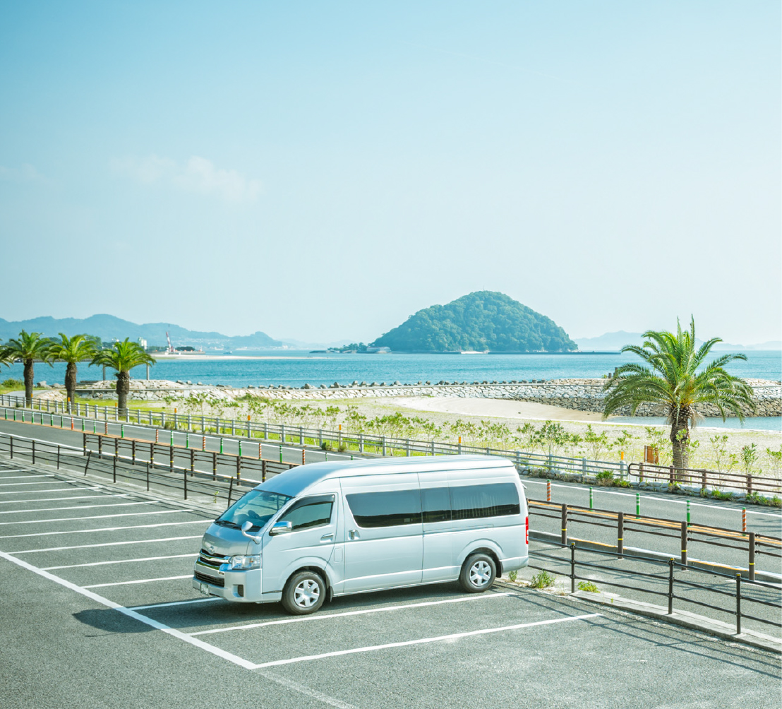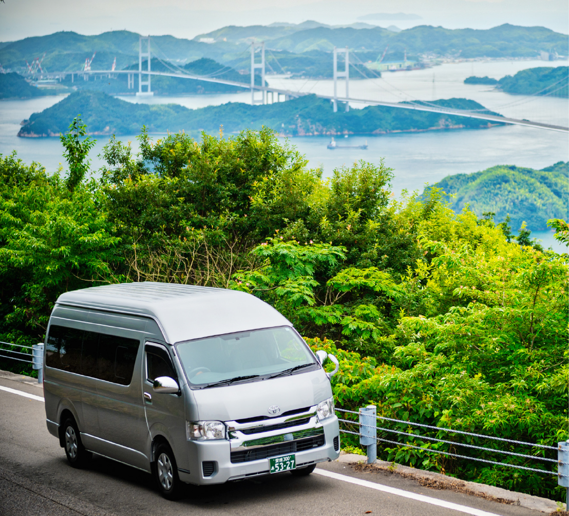 ジャンボタクシーは、お客様9名までご乗車可能で、スーツケースなどのお荷物を積載するラゲッジルームも備えております。広々とした車内空間は開放感があり、車内での移動も楽に行っていただけます。長距離の移動でも疲れにくい乗り心地も魅力です。チャイルドシートやしまなみ海道へのお出かけなどに便利なサイクルキャリアもご利用いただけます。
