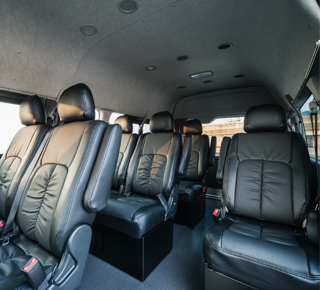 最大9名まで乗車できる貸切タクシーです。スーツケースは最大9個。チャイルドシートやサイクルキャリアにも対応し、空港〜ホテル〜観光地を一台でスムーズに移動できます。